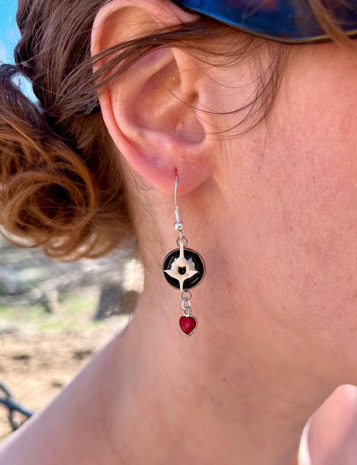 Enamel Snake Vertebrae Earrings | Gold Plated or Stainless Steel | Crystal Heart Drop | Hypoallergenic